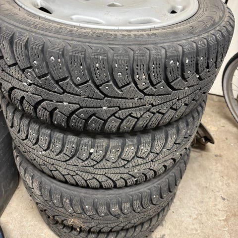 V40 - 4/114,3 - 15tum - fina dubbdäck med 8-9mm mönster kvar.