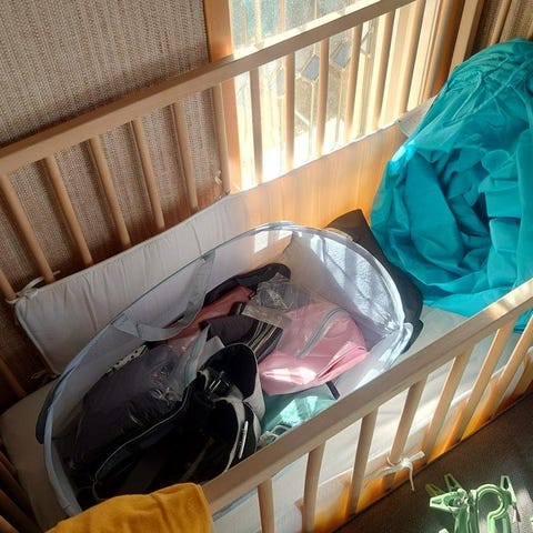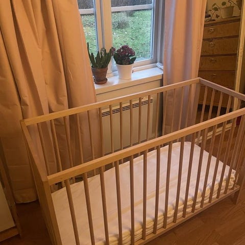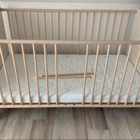 Vi säljer vår ombyggda spjälsäng/barnsäng då den vi växt ut den. Ombyggd enligt bild så att vårat barn kunna kliva i och ur själv, inspirerat från tiktok.