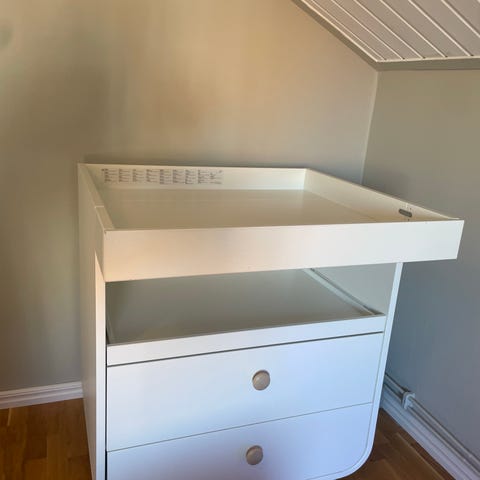 Vit Troll byrå Lukas. Kan även användas som skötbord med separat skötdel.