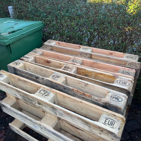 Träpallar med måtten 100x120 cm. Tillverkade av trä och lämpliga för transport och lagring av olika typer av gods.