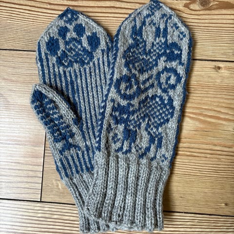 Handstickade vantar.