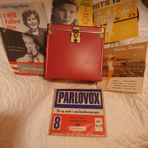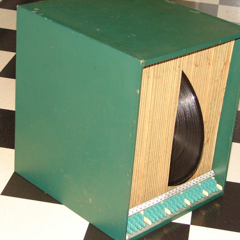 Spisarboxen från Alstermo rymmer ca 50-55 skivor.
