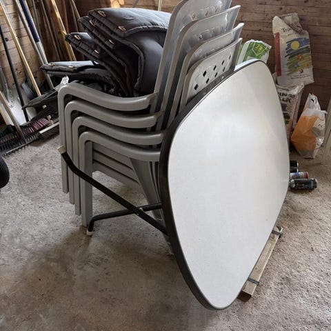 Nytt Bord och 2 Stolar I Handsmidat Järn. Om annonsen är kvar, finns varan kvar. Vänligen observera endast avhämtning i Nybro. Helt nytt 1 bord och 2 stolar, som förvarats i varm källare. Runt trädgårdsbord tillverkat i handsmitt järn. Med en diameter på 70 cm förenar det nostalgisk stil och funktionalitet för att pryda ditt balkong,terass eller trädgård.Höjd 72 cm. Tillverkad med precision är den extremt stabil och dess yta återges för hand med en antik patina. Stabil och hög kvalitet: De böjda bordsbenen säkerställer att de står säkert. Den robusta metallen är högkvalitativt bearbetad och konstruerad för ett långt liv utomhus. Lättskött: Ytan kan enkelt rengöras med en fuktig trasa. Perfekt för daglig användning utan ansträngning, väderbeständig och smutsbeständig. Järnstolarna är en dekorativ detalj i trädgården, uterummet, balkongen eller på terrassen. De dekorerade handgjorda stolarna är ett riktigt blickfång och kan lätt rengöras. Det är bekvämt att sitta på stolarna, och det höga ryggstödet ger extra sittkomfort. Praktiskt: Stolarna kan lätt förvaras för att spara utrymme tack vare fällfunktione (hopfällbara). Lämplig för både inomhus- och utomhusbruk. Ungefärliga mått: Totalhöjd: 91 cm Totalbredd: 41 cm Totaldjup: 50 cm Sitthöjd: 45 cm.Höjd ryggstöd: 50 cm Bordet köpt för 1695 kr, stolarna 1195 kr/st totalt 4085 kr. Endast avhämtning i centrala Nybro(hämtas i min källare) Betalning med Swish.Budgivning undanbedes.Klicka på bilderna för större format
