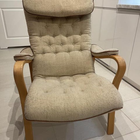 Fåtöljen är mycket bekväm och har ett härligt "gung".