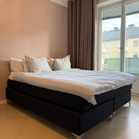 Säljer min jättefina dubbelsäng 160/200 med Pocketresårmadrass,/sängavel