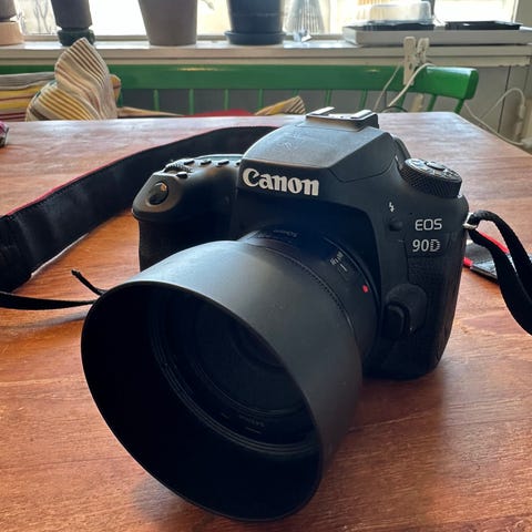 Sony DSLR-kamera med avtagbar lins och inbyggd skärm. Passar för fotografering i olika miljöer och ger möjlighet till manuell inställning av exponering och fokus.
