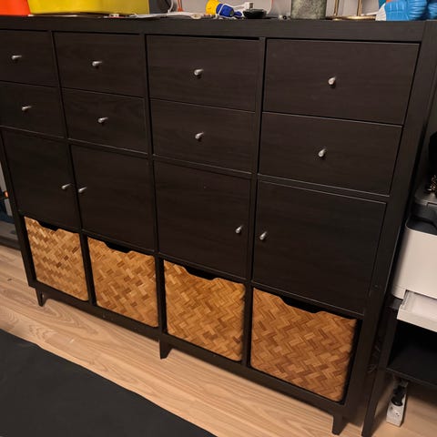 KALLAXHylla nyskic vit inklusive/Dröna svart, 77x39x77 cm lådor