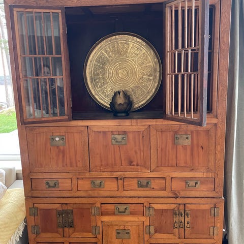 Kinesiskt äldre bröllopsskåp i Alm jag köpt för ca 35 år sedan.Inget kvitto kvar!handlade i en privat butik.Säljer för 18.000 kr.Prutat och klart!