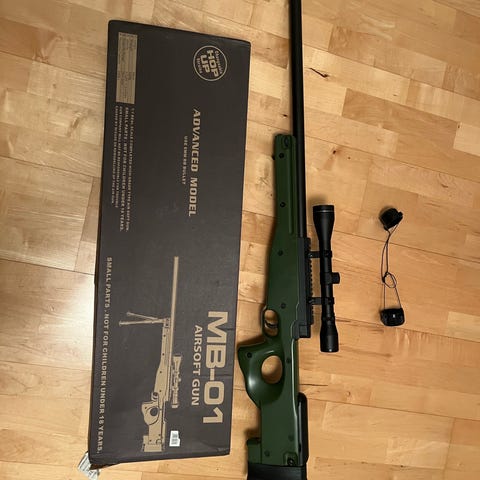 Säljer en AWP L96 airsoft i mycket bra skick. Den fungerar som den ska och kommer med magasin till själva AWP:n. I köpet ingår även två skyddsglasögon och två skyddsmasker för ansiktet. Jag skickar dessutom med två M4-magasin och ett batteri som inte hör till AWP:n men som man kan få på köpet.