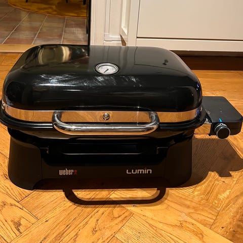 Använd fåtal gånger. Säljer pga flytt till hus. Ingår elgrill + stativ + instruktionsböcker. Se bilder