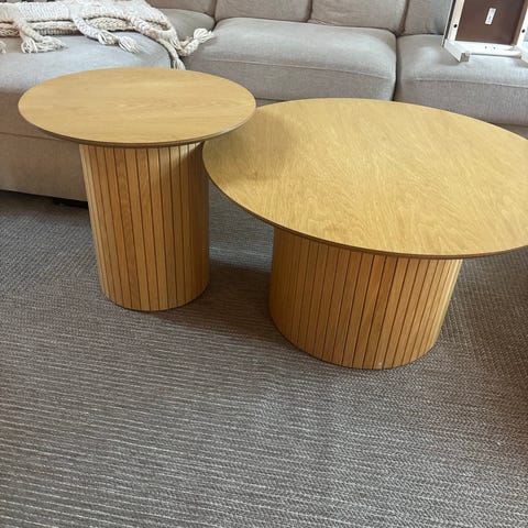 Två begagnade trekantiga bord säljes