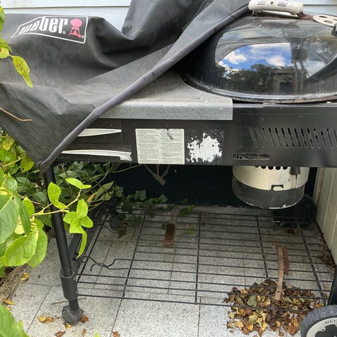 Weber Original Kettle kolgrill i svart färg. Grillen har ett runt lock och en gallergrillyta. Den är utrustad med ventilationsöppningar för temperaturkontroll och ett handtag på locket. Grillen står på ett stativ med hjul för enkel förflyttning.