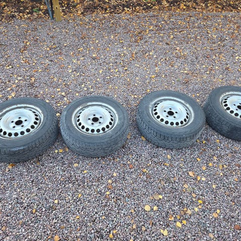 Plåtfälgar med sommardäck som suttit på VW Transporter från 2020. Däck i ok slitet skick, håller 1-2 säsonger.