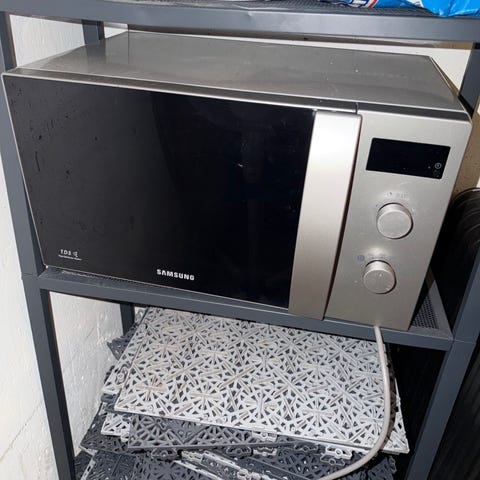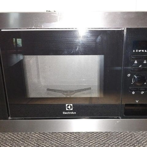 Electrolux mikrovågsugn i vit färg. Utrustad med mekaniska reglage för inställning av effekt och tid. Passar för uppvärmning och tillagning av mat.