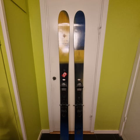Säljer mina K2 Ski Press då jag nyss skaffat mina drömskidor i utbyte. Skidorna är använda ganska mycket under 3 säsonger och har använts mycket i park/off pist, därav har de ett flertal par repor/ytliga skador men ingenting som påverkar själva åkningen något märkbart. Den ända djupa skadan är en mindre repa på undersidan av ena skidan (Se bilder). Skidorna kommer utan bindningar och de gamla bindnings hålen är pluggade. De är 169cm långa.
