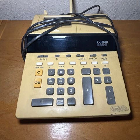 Canon P23-DTSC kalkylator med utskrift. Utrustad med en tydlig grön digital display och en inbyggd skrivare för pappersutskrifter. Passar för kontorsbruk där utskrift av beräkningar krävs. Pappersrulle medföljer