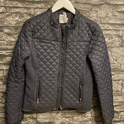 Svart jacka från Saint Tropez med detaljer i konstläder. Jackan har dragkedja fram och två dekorativa dragkedjor nedtill , några trådar är lösa dock kan klippas bort.