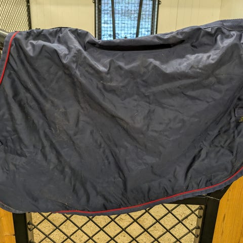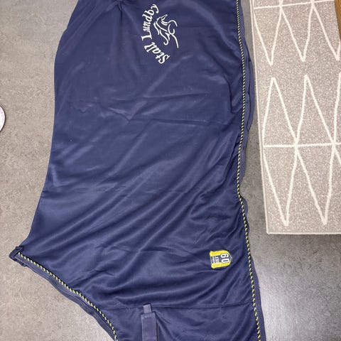 Copperfield Access skritttäcke i marinblått. Strl 136 cm (125-155 cm). Täcket har dekorativa detaljer. Fint skick bortsett från slitage på ett band, se bild.