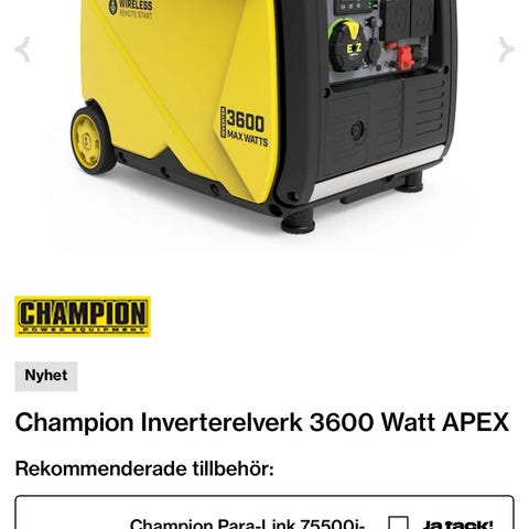 Elverk Inverterelverk Champion Generators 2000W Dual Fuel