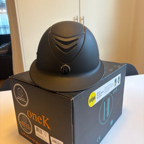 Sparsamt använd ridhjälm i stilren mattsvart finish. MIPS-skydd för ökad säkerhet. Inga avramlingar, välskött, men har mindre repor och redo för många fler ridturer. Hjälmpåsen är något nött. Tillverkad 2022. Godkänd för tävling (VG1/EN-standard).