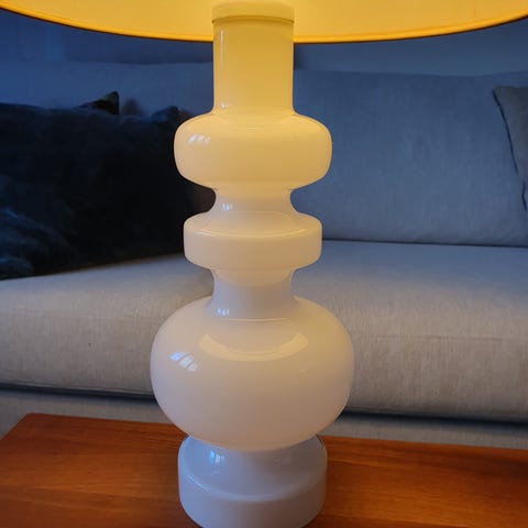 Ikeas bordslampa Ljusås Sabo i munblåst glas. Äldre modell som utgått ur sortimentet.