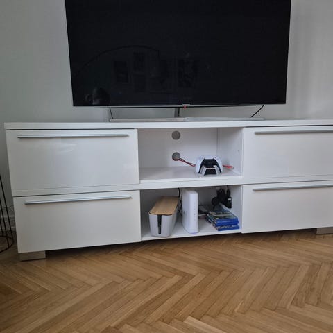Vi råkade beställa två stycken TV-bänkar… På grund av detta har vi en av TV-bänkarna över. Den är nu uppmonterad för att kunna sälja vidare.
