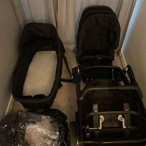BRIO barnvagn med sitt- och liggdel. Barnvagnen har en robust ram och justerbart handtag. Färgen är mörk och den är utrustad med hjul som passar för olika underlag.