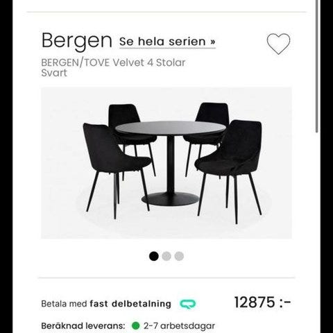 Säljer nu en jättefin matbord 120 × 80 (Twain) och 4 stolar (Salaman) från Chilli, helt oanvända. Allt köpt för 3 800kr