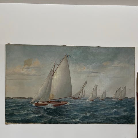 L Blomqvist Marinehamn Olja på duk Skeppsmotiv 1992
