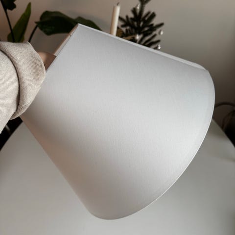 Lampskärmen är i utmärkt skick, förutom lite skav på fästet till glödlampan som sitter på insidan - detta syns inte alls när skärmen sitter på lampfot.