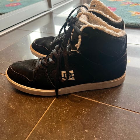Jätte snygga DC skor, använda 2 gånger, typ bara prövat på. De blå skosnörena följer inte med, det kommer de originala vita snörena med skorna!