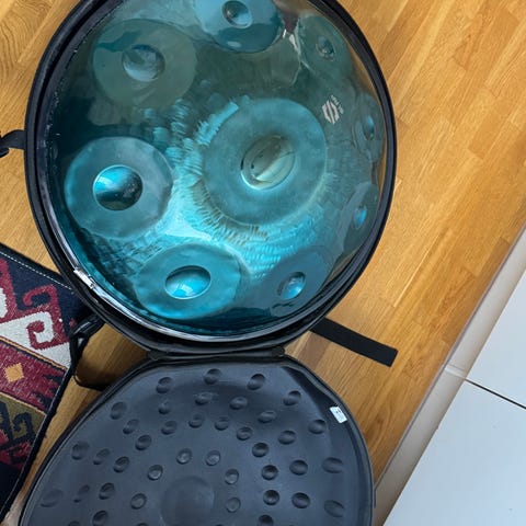Alla tillbehör som syns på bilden ingår: kuddar, stämningshammare och träblock.