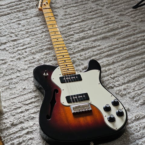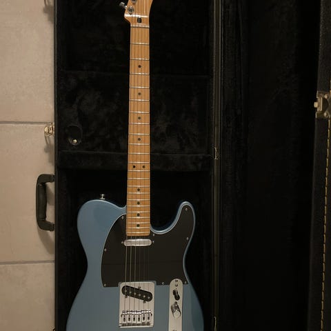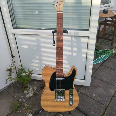 Jättefin Telecaster modell. HK guitars är enligt uppgift ett tidigare tyskt märke, väldigt bra gitarr för pengarna. Inga dings eller synliga märken, justerad och intonerad. Bra mikar, den låter precis som en tele ska och är i nyskick. Steglös mikomkopplare!