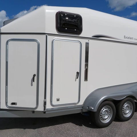 GRP-modellerna med sandwichväggar och golv är speciellt framtagna för vårt växlande klimat. Fabriken har även tänkt på alla långa ryttare, skötardörren är hela 1,9 meter hög så du slipper krypa in i transporten när du ska in till hästarna. Komfort för dig och dina hästar!