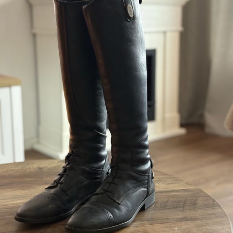 Grip ridstövlar i svart läder med snörning fram och dragkedja bak. Stövlarna är avsedda för ridning och har en klassisk design.