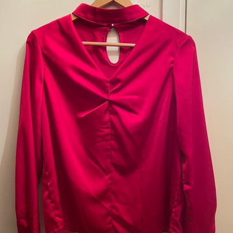 En blommig blus i figurnära stil. Liten i storleken. Snarare 36 än 38