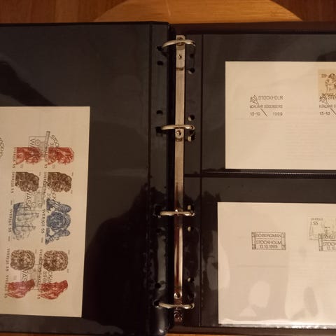 En samling ca 78 svenska FDC (Förstadagsbrev), för perioden 1970 - 1975, ordnade i allmänhet kronologiskt på 20 dubbelsidiga blad i en FDC pärm.