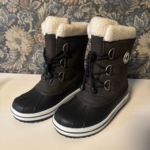 Superfina rosa vinterkängor i bra skick. De är vattentäta (Water Proof) och har ett varmt och mjukt innerfoder som håller fötterna varma under kalla dagar. Kardborreband gör dem enkla för barnet att ta på och av själv. Rejäl sula med bra grepp för lek i både snö och slask.
