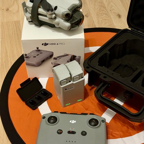 DJI Mini 4 Pro drönare med fjärrkontroll, väska och batterier