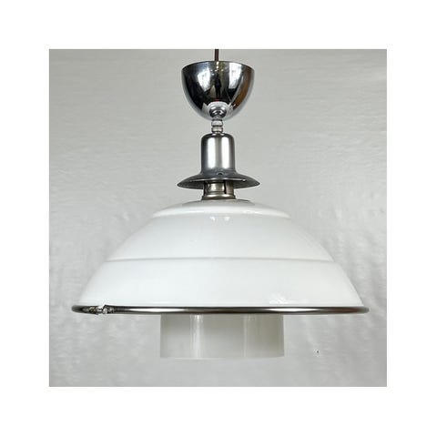 Lackerad plåtskärm med opalglas i kupan.