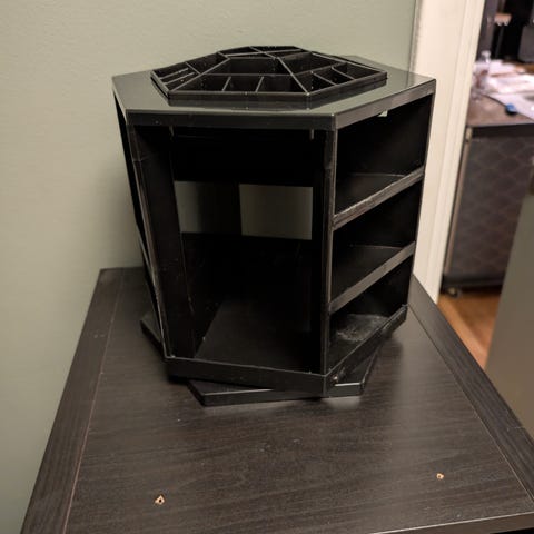 Jag säljer en helt ny sminklåda med tre lådor gjort av glas och mässing i väldigt hög kvalitet. Måtten är 26 x 19.5 x 9cm. Hämtas i Trångsund.