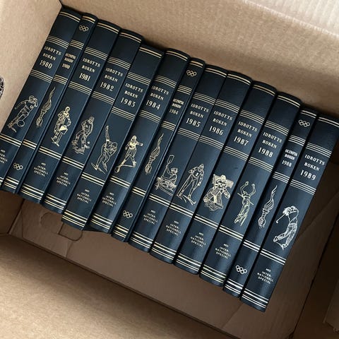 Olympiaboken, från 1948- 2018. Böckerna är sparsamt använda (stått i en bokhylla). Kan skickas mot att köparen står för portokostnad.