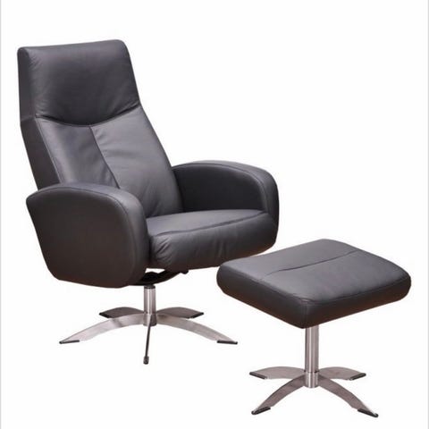 Svart skinnfåtölj med pall