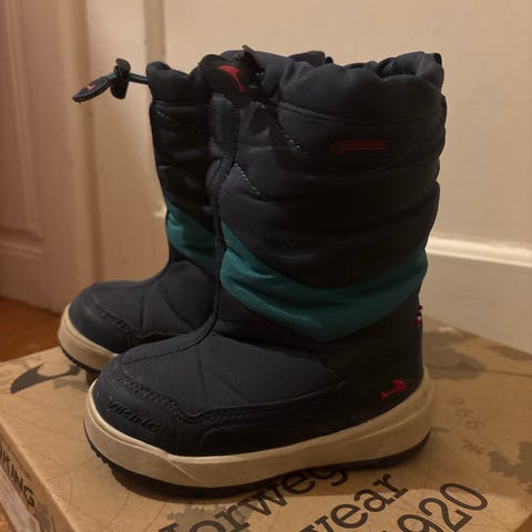 Viking vinterkängor med praktisk kardborrestängning i stl 22. Synligt använda men helt oskadade, vattentäta med gore-tex.