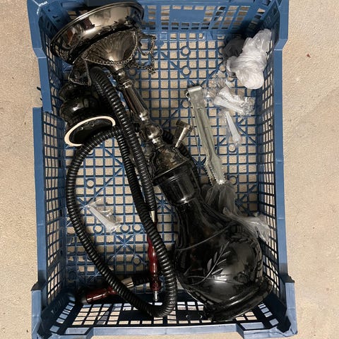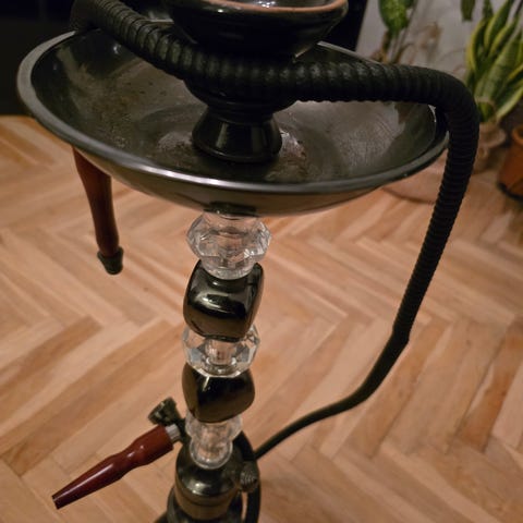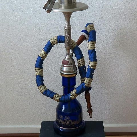 Vattenpipa med dekorativa detaljer i olika färger. Tillverkad av metall och keramik. Passar för användning som traditionell vattenpipa. Använd ett fåtal gånger.