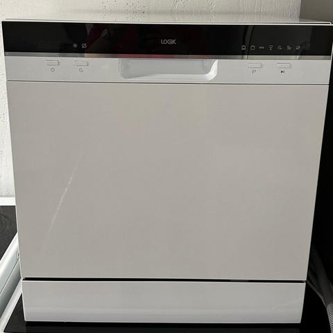 En vit bänkdiskmaskin från Logik. Den är i fint skick och fungerar felfritt.