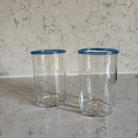 Praktisk förvaringsburk från IKEA med lila/cerise-färgat lock. Mått: 16,5 cm hög, 12 cm i diameter.