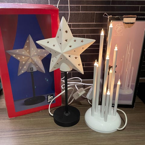 Fantastiskt fin svarvad tärna som adventsljusstake tillverkad i trä. e14 lamphållare, köp til lampa.