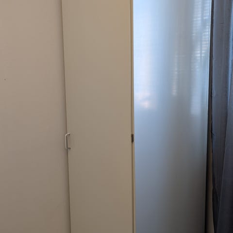 Hög garderob med spegeldörrar