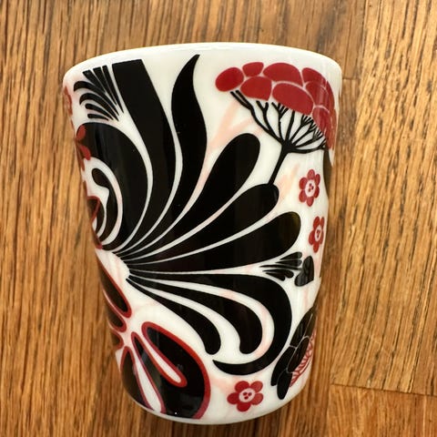 I design av Hanna Werning för Linne’-året 2007. Muggarna rymmer 33 cl.